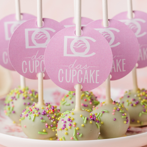 Logo cake pops come in a cake box. They can be taken out of this box and placed directly onto a plate or platter as they have a smooth bottom. Individually packaged cake pops are also possible. Please search for individually packaged